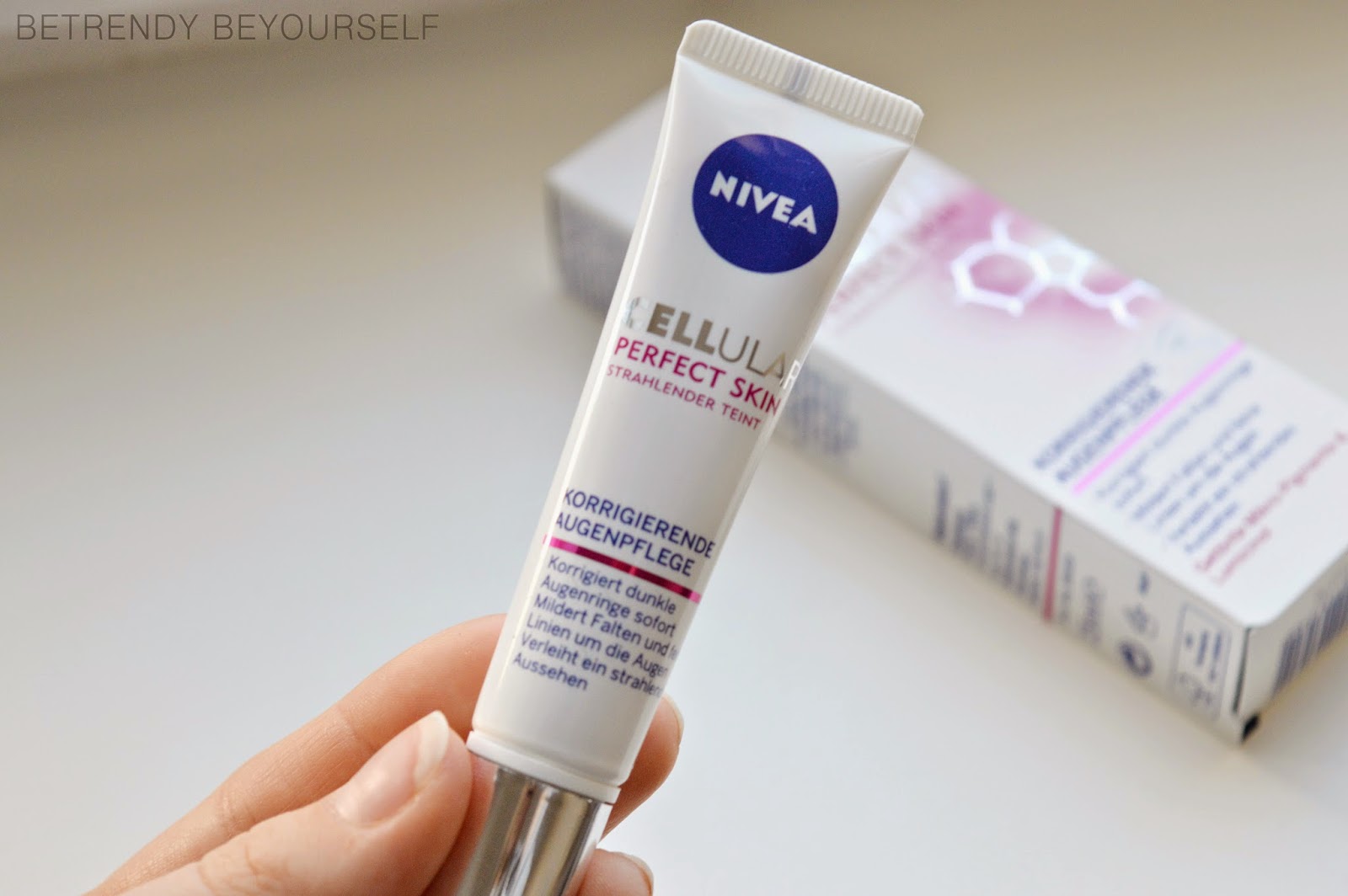 … Die Pflege ist leicht gefärbt, aber passt sich dem Hautton an, viel besser als ein Concealer. Kleine Fältchen unter den Augen wurden vermindert, doch Augenringe werden nicht sofort entfernt, nur durch die leichte Tönung, werden die Augenringe „versteckt“. Geschwollene Augenringe werden wie versprochen reduziert!