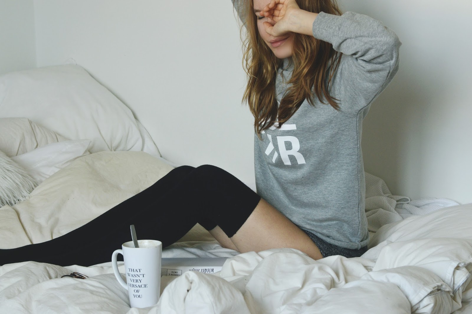 Das ich mich wirklich traue euch dieses Bild zu zeigen. Die ungeschminkte, kranke, gerade erst aufgestandene Wahrheit. So sieht es aus! Nicht perfekt, aber viel besser als ein mit Make-Up vollgeklatschtes Gesicht. An meinen freien Tagen genieße ich es den ganzen Tag so rumzulaufen. Im größten Sweater, mit einer gemütlichen Shorts und gaaaaanz langen Strümpfen. Ein absolutes MUST HAVE: Sweater! Am besten oversized, oder eine bequeme Fleece Jacke, wie bei Sieh an! Ich bin zwar ein Mensch der kurze Hosen in der Freizeit bevorzugt, einfach, weil mich die langen Hosenbeine manchmal stören, aber irgendwann wird es auch mir zu kalt und dann krame ich meine alten Nicki-Hosen raus. Ja, ich trage sie auch noch heute. Hier musste ich wirklich lange nach einer Suchen, weil ich mir sicher bin, dass nicht jeder von euch diese mega stylischen ;)) Hosen kennt. Sieh an! hat hier zum Beispiel eine, die meiner sehr ähnelt. Ich brauch unbedingt ein paar neue..