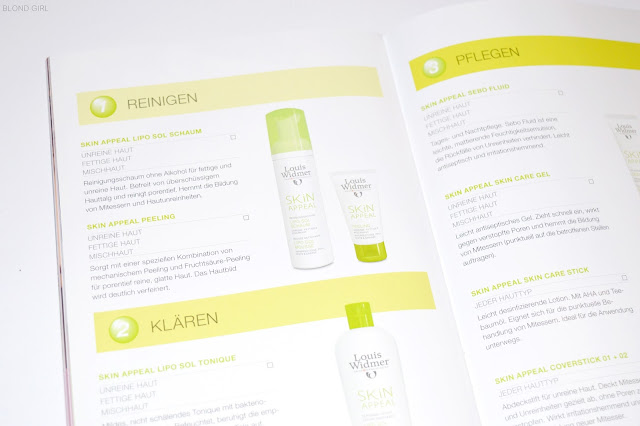 Ich habe auf der Homepage von Louis Widmer nachgelesen, da ich bereits früher einmal, eine Creme gegen Pickelnarben von Louis Widmer verwendet habe. Als ich dann erfahren habe, dass Louis Widmer auf Pflegeprodukte für speziell unreine/fettige Haut hat, war ich sofort in meinem Element. Ich habe mich alles genau durchgelesen und ich glaube das Richtige gefunden. Die Produkte habe ich mir gleich notiert!