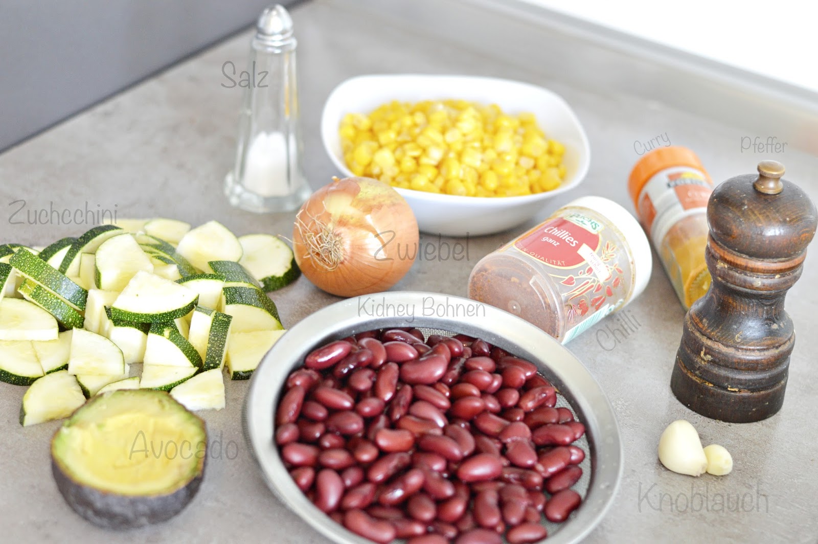 4. sind die Zwiebeln glasig geworden, dann gibt ihr die Kidney Bohnen und den Mais hinzu