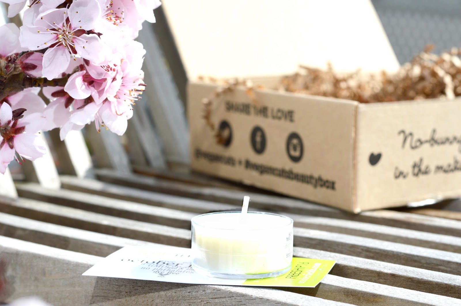 Als ich die Box geöffnet habe kam mir sofort ein frischer Kamillen-Duft entgegen und dieser Duft kam von dem veganen October Fields-Teelicht. Wie frisch gewaschene Wäsche!